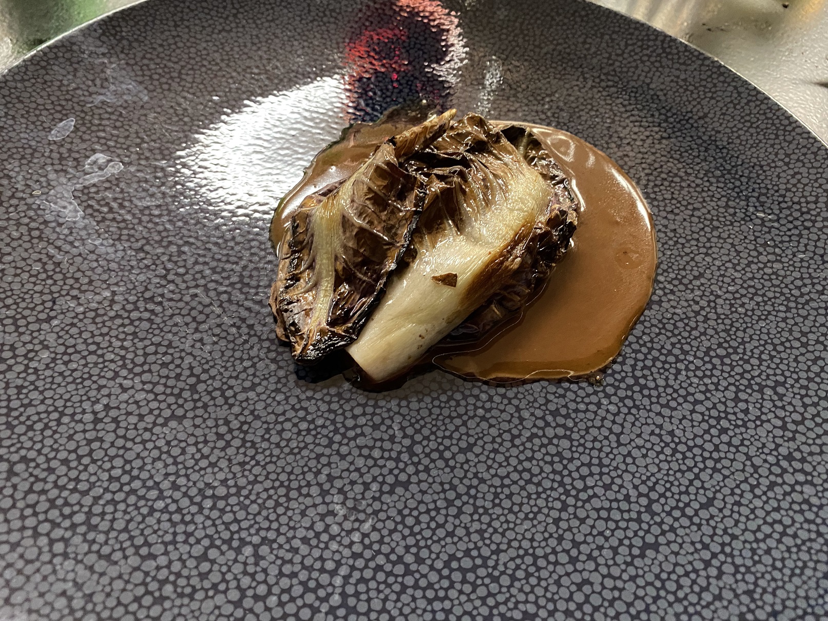 The final main: wagyu strip with treviso (a mild form of radicchio).