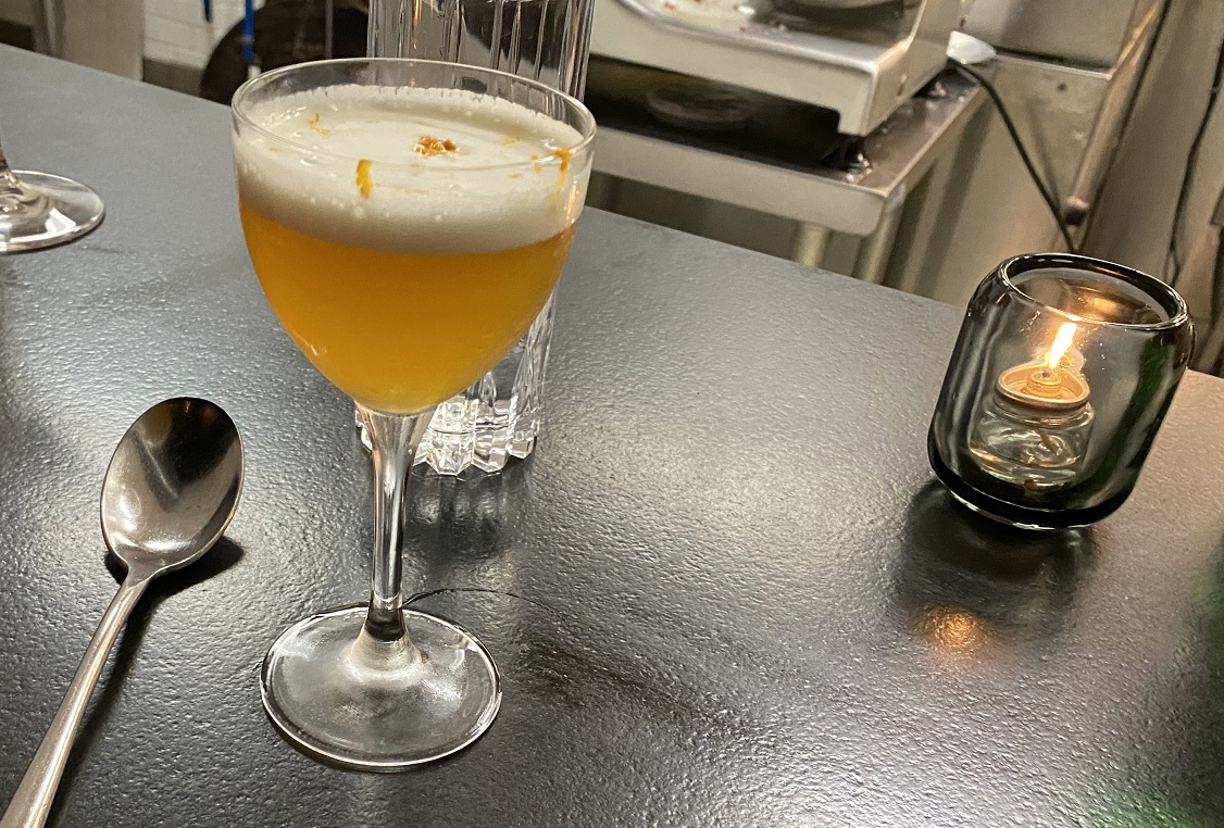 Our dessert drink made with rum and yogurt froth, with orange zest.